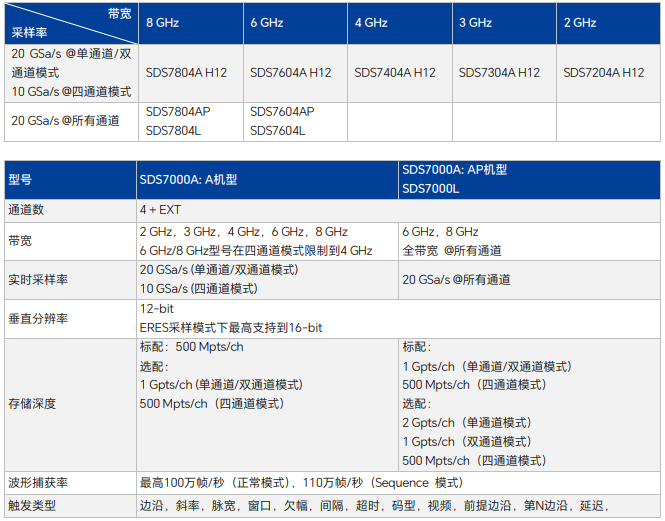 存储深度最高达 2 Gpts/通道(AP 机型)