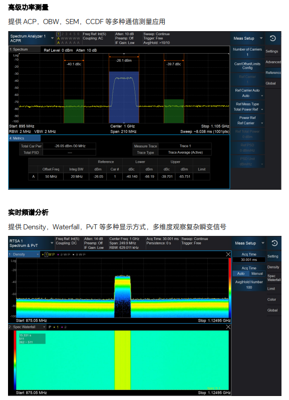 8、支持高级功率测量,相位噪声测量,噪声系数测量,脉冲参数测量,电磁兼容测试,模拟调制分析等多种射频微波常见测试测量功能