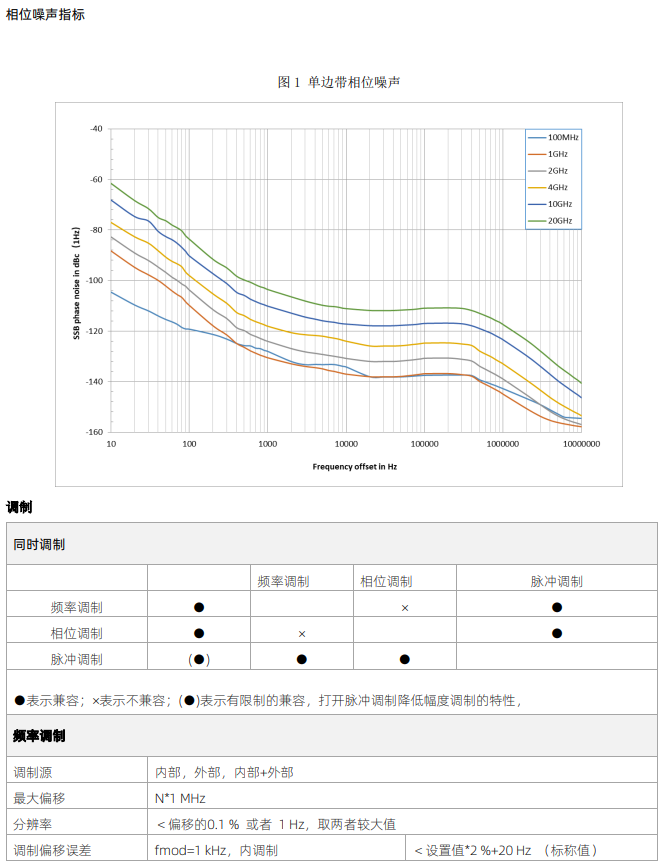 3.相位噪声:<-135dBc/Hz@1GHz,偏移10kHz(典型值)